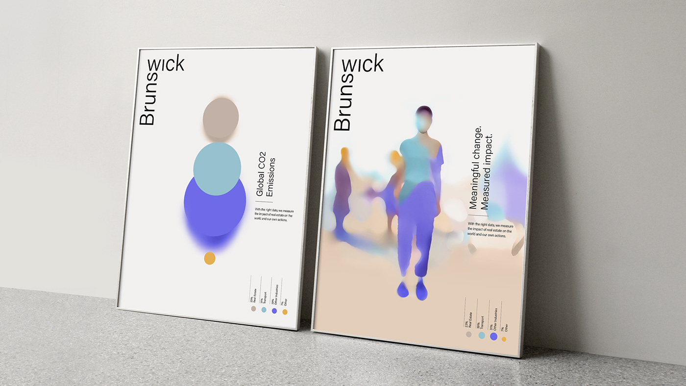 品牌VI形象设计负责任的美学作为 Brunswick 成功的关键指标,我们决定使用数据来形成身份的基础。受到 Olafur Eliasson 等“元素”艺术家的启发,我们希望创建一个能够反映数据对人类和社会的影响和变化的品牌世界。因此,我们采用了区域 ESG 数据(环境、社会和治理 ('ESG') 标准是具有社会意识的投资者用来筛选投资的一组标准),并通过开发一种全新的绘画 AI——自动化现场在建筑环境中对人的图像进行视觉重组,并使用当地环境数据以抽象形式表达它们。