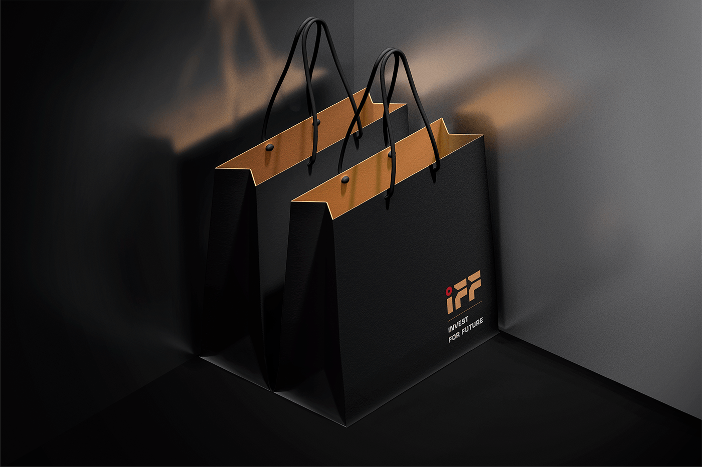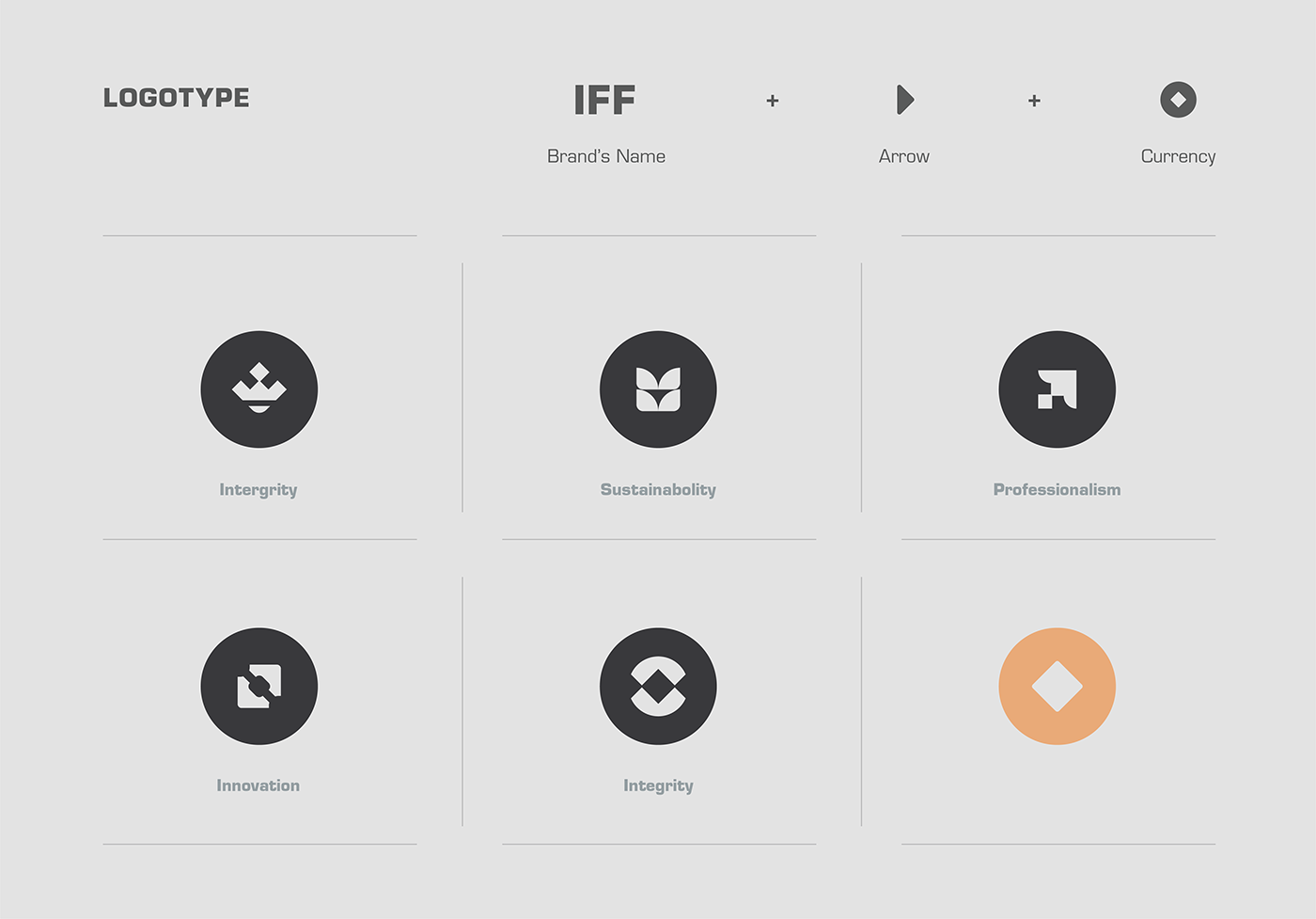 标志设计中逗号的灵感来源于转发箭头和表示货币的硬币的图像,它创建了一个IFF标志和金融品牌设计,简约而专业的设计深刻地反映了金融行业的形象。